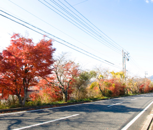 アークエンジェル恵那へ向かう並木道。秋には満点の
